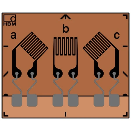 Rosette Strain Gages have three measuring grids arranged at an angle of 0°/45°/90° or 0°/60°/120°.