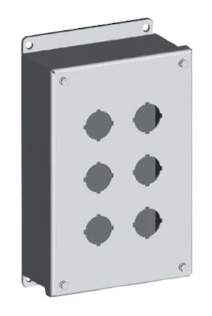 Designed to offer protection for all standard brands of oil-tight pushbuttons, switches, and pilot lights where slanted surfaces are desired. It offers protection from dust, dirt, oil and water.